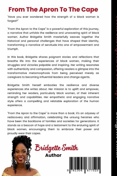 "Have you ever wondered how the strength of a black woman is forged?" "From the Apron to the Cape" is a powerful exploration of this journey, a narrative that unfolds the resilience and unwavering spirit of black women. Author Bridgette Smith masterfully weaves together the historical and personal challenges that have shaped their identity, transforming a narrative of servitude into one of empowerment and triumph. In this book, Bridgette shares poignant stories and reflections that breathe life into the experiences of black women, making their struggles and victories palpable and inspiring. Her writing resonates with authenticity and compassion, offering readers a glimpse into the transformative metamorphosis from being perceived merely as caregivers to becoming influential leaders and change agents. Bridgette Smith herself embodies the resilience and diverse experiences she writes about. Her mission is to uplift and empower, reminding her readers, particularly black women, of their inherent strength and capabilities. Her empathetic and engaging narrative style offers a compelling and relatable exploration of the human experience. "From the Apron to the Cape" is more than a book; it's an odyssey of rediscovery and affirmation, celebrating the unsung heroines who have been the backbone of families and societies for generations. It stands as a beacon of hope and a testament to the enduring spirit of black women, encouraging them to embrace their power and proudly wear their capes.