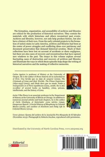 The formation, organization, and accessibility of archives and libraries are critical for the production of historical narratives. They contain the materials with which historians and others reconstruct past events. Archives and libraries, however, not only help produce history, but also have a history of their own. From the early colonial projects to the formation of nation states in Latin America, archives and libraries had been at the center of power struggles and conflicting ideas over patrimony and document preservation that demand historical scrutiny. Much of their collections have been lost on account of accidents or sheer negligence, but there are also cases of recovery and reconstruction that have opened new windows to the past. The essays in this volume explore several fascinating cases of destruction and recovery of archives and libraries and illuminate the ways in which those episodes help shape the writing of historical narratives and the making of collective memories.
