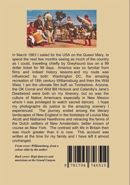 In March 1963 I sailed for the USA on the Queen Mary, to spend the next few months seeing as much of the country as I could, travelling chiefly by Greyhound bus on a 99 dollar ticket for 99 days. America was so familiar from films and indeed history lessons and my route was influenced by both: Washington DC, the amazing recreation of 18th century Williamsburg and then the Wild West, I am the ultimate film buff, so Tombstone, Arizona, the OK Corral and Wild Bill Hickock and Calamity's Jane's Deadwood were both on my itinerary, but so was the culture of Native Americans especially in New Mexico where I was privileged to watch sacred dances. I hope my photographs do justice to the amazing scenery I experienced. The journey ended among the literary landscapes of New England in the footsteps of Louisa May Alcott and Nathaniel Hawthorne and retracing the farms of the Dutch settlers of New Amsterdam, better known of course as New York. The contrast with life in Britain then was much greater than it is now. This account was written at the time for my family and I have left it almost unchanged.