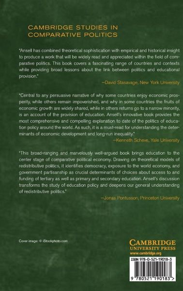 Ben Ansell is Assistant Professor of Political Science at the University of Minnesota. He has published articles on education policy in International Organization and World Politics. He received his PhD from Harvard University, where he was awarded the Senator Charles Sumner Dissertation Award. He has served as a member of the UK's Leitch Review of Skills, has worked on education policy for Her Majesty's Treasury, and has held visiting fellowships at the Centre for Economic Performance at the LSE and the Max Weber Programme at the European University Institute.