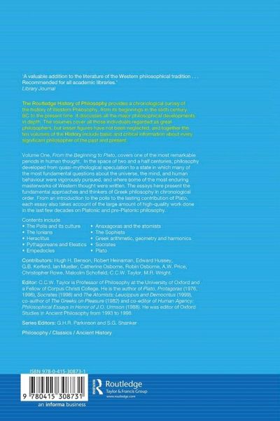 This first volume in the series traces the development of philosophy over two-and-a-half centuries, from Thales at the beginning of the sixth century BC to the death of Plato in 347 BC.