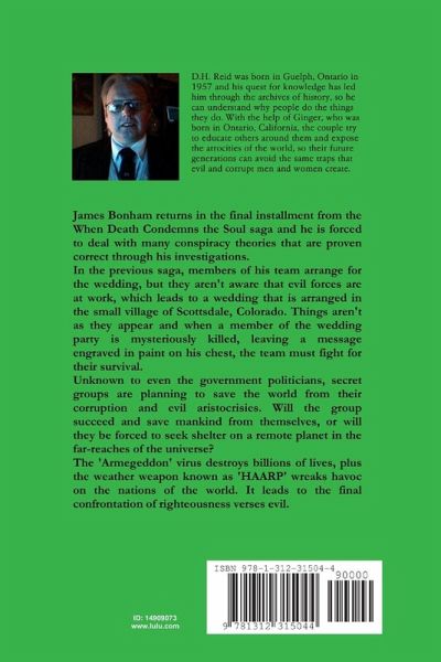 James Bonham returns in the final installment from the When Death Condemns the Soul saga and he is forced to deal with many conspiracy theories that are proven correct through his investigations. In the previous saga, members of his team arrange for the wedding, but they aren't aware that evil forces are at work, which leads to a wedding that is arranged in the small village of Scottsdale, Colorado. Things aren't as they appear and when one of the wedding party is mysteriously killed, leaving a message engraved in paint on his chest, the team must fight for their survival. Unknown to even the government politicians, secret groups are planning to save the world from corruption and evil aristocrisies. Will the group succeed and save mankind from themselves, or will they be forced to seek shelter on a remote planet at the far-reaches of the universe? The 'Armegeddon' virus destroys billions of lives, plus a weather weapon known as 'HAARP'is used. It leads to the final confrontation of righteousness verses evil.