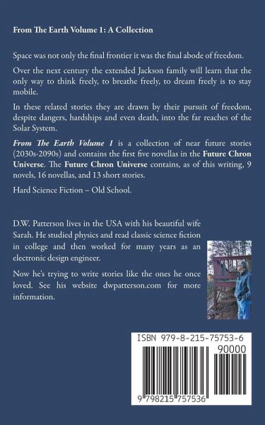 From The Earth Volume 1: A Collection Space was not only the final frontier it was the final abode of freedom. Over the next century the extended Jackson family will learn that the only way to think freely, to breathe freely, to dream freely is to stay mobile. In these related stories they are drawn by their pursuit of freedom, despite dangers, hardships and even death, into the far reaches of the Solar System. From The Earth Volume 1 is a collection of near future stories (2030s-2090s) and contains the first five novellas in the Future Chron Universe: From The Earth Series. First published, May 2017. The Future Chron Universe consists of 33 volumes including 9 novels, 1 short novel, 15 novellas, and 8 short stories. Hard Science Fiction - Old School.