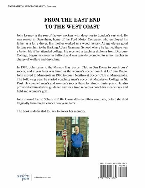 John Leaney is the son of factory workers with deep ties to London’s east end. He was reared in Dagenham, home of the Ford Motor Company, who employed his father as a lorry driver. His mother worked in a wood factory. At age eleven good fortune sent him to the Barking Abbey Grammar School, where he learned there was a better life if he attended college. He received a teaching diploma from Didsbury College, began his career in Salford, and was quickly promoted to senior teacher in charge of welfare and discipline. In 1983, John came to the Mission Bay Soccer Club in San Diego to coach boys’ soccer, and a year later was hired as the women’s soccer coach at UC San Diego. John moved to Minnesota in 1986 to coach Northwest Soccer Club in Minneapolis. The following year he started coaching men’s soccer at Macalester College in St. Paul. He coached men’s and women’s soccer there for almost thirty years. He also provided administrative guidance and for a time served as coach for men’s track and field and women’s golf. John married Carrie Schulz in 2004. Carrie delivered their son, Jack, before she died tragically from breast cancer two years later. The book is dedicated to Jack to honor her memory.