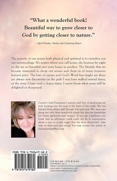 The poverty of our senses both physical and spiritual is in ourselves not our surroundings. No matter where you call home, the heavens by night or day are as beautiful over your home as another. The lifestyle that we become immersed in decay our senses and cheat us of many treasures beyond price. The author takes the reader into the love of nature and God's Word and showing there are always new discoveries on every path. The reader will be immersed in their senses being delighted or sharpened.