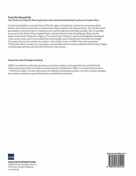 The publication captures the knowledge and lessons from a water supply project in the coastal city of Khulna in Bangladesh in addressing the worsening salinity levels in the water sources. The transition from groundwater to surface water or conjunctive use can be costly and technically complex. The Khulna Water Supply Project, cofinanced by the Asian Development Bank and the Japan International Cooperation Agency, developed a new surface water source and avoided the recurring high costs of desalination treatment technology. The project financed an entirely new system-from intake to tap-for 65% of the city's population. The transformative changes from the project were possible with the newly established Khulna Water Supply and Sewerage Authority, only the third of its kind in the country.
