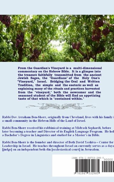 From the Guardian's Vineyard is a multi-level commentary on the Hebrew Bible. It is a glimpse into the treasure faithfully transmitted from the ancient Jewish sages, the "Guardians," of the Holy One's "Vineyard," Israel. Bridging the Oral and the Written Tradition, the simple and the esoteric as well as explaining many rituals and practices harvested from the "vineyard," both the newcomer and the seasoned student of the Bible will find an appetizing taste of that "which is contained within." This volume is an extensive commentary on the first book of the Torah (Bible), the book of Genesis. Included are detailed explanations, and descriptions of ritual and practices connected with the various verses, as well as many deep Qabalistic insights.