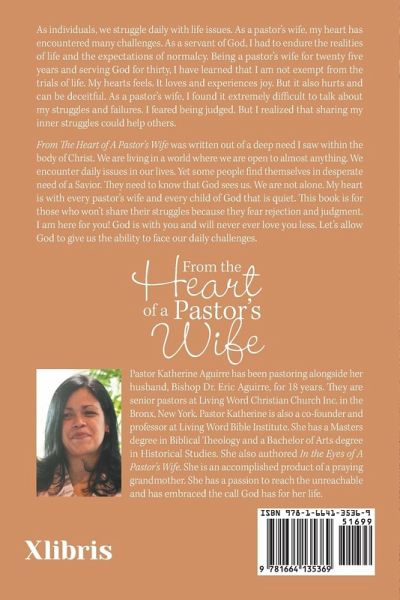 As individuals, we struggle daily with life issues. As a pastor's wife, my heart has encountered many challenges. As a servant of God, I had to endure the realities of life and the expectations of normalcy. Being a pastor's wife for twenty five years and serving God for thirty, I have learned that I am not exempt from the trials of life. My hearts feels. It loves and experiences joy. But it also hurts and can be deceitful. As a pastor's wife, I found it extremely difficult to talk about my struggles and failures. I feared being judged. But I realized that sharing my inner struggles could help others. From The Heart of A Pastor's Wife was written out of a deep need I saw within the body of Christ. We are living in a world where we are open to almost anything. We encounter daily issues in our lives. Yet some people find themselves in desperate need of a Savior. They need to know that God sees us. We are not alone. My heart is with every pastor's wife and every child of God that is quiet. This book is for those who won't share their struggles because they fear rejection and judgment. I am here for you! God is with you and will never ever love you less. Let's allow God to give us the ability to face our daily challenges.
