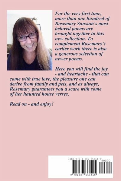 For the very first time, more than one hundred of Rosemary Sansum's most beloved poems are brought together in this new collection. To complement Rosemary's earlier work there is also a generous selection of newer poems. Here you will find the joy - and heartache - that can come with true love, the pleasure one can derive from family and pets, and as always, Rosemary guarantees you a scare with some of her haunted house verses. Read on - and enjoy!
