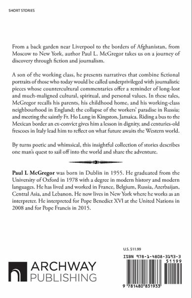 From a back garden near Liverpool to the borders of Afghanistan, from Moscow to New York, author Paul L. McGregor takes us on a journey of discovery through fiction and journalism. A son of the working class, he presents narratives that combine fictional portraits of those who today would be called underprivileged with journalistic pieces whose countercultural commentaries offer a reminder of long-lost and much-maligned cultural, spiritual, and personal values. In these tales, McGregor recalls his parents, his childhood home, and his working-class neighbourhood in England; the collapse of the workers’ paradise in Russia; and meeting the saintly Fr. Ho Lung in Kingston, Jamaica. Riding a bus to the Mexican border an ex-convict gives him a lesson in dignity, and centuries-old frescoes in Italy lead him to reflect on what future awaits the Western world. By turns poetic and whimsical, this insightful collection of stories describes one man’s quest to sail off into the world and share the adventure.