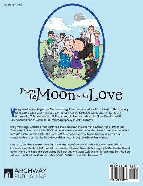 "Zola loves talking to the Moon every night, convinced that a Moon friend is responding. She is right. Luna, the Moon girl, also waves down every night, not knowing that Zola cannot see her. Neither realizes the role they and their families are about to play in the Great Restoration after the Great War. What transpired on Zola's birthday? Are the Earth and Moon families ready for a great quest?"