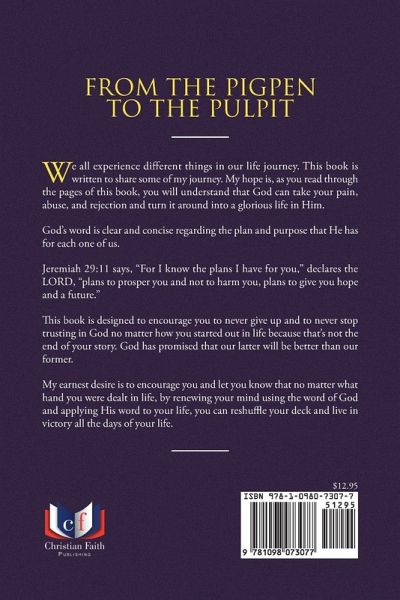 We all experience different things in our life journey. This book is written to share some of my journey. My hope is, as you read through the pages of this book, you will understand that God can take your pain, abuse, and rejection and turn it around into a glorious life in Him. God's word is clear and concise regarding the plan and purpose that He has for each one of us. Jeremiah 29:11 says, "For I know the plans I have for you," declares the Lord, "plans to prosper you and not to harm you, plans to give you hope and a future." This book is designed to encourage you to never give up and to never stop trusting in God no matter how you started out in life because that's not the end of your story. God has promised that our latter will be better than our former. My earnest desire is to encourage you and let you know that no matter what hand you were dealt in life, by renewing your mind using the word of God and applying His word to your life, you can reshuffle your deck and live in victory all the days of your life.