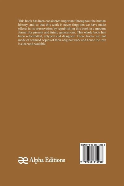 This book has been considered important throughout the human history, and so that this work is never forgotten we have made efforts in its preservation by republishing this book in a modern format for present and future generations. This whole book has been reformatted, retyped and designed. These books are not made of scanned copies and hence the text is clear and readable.
