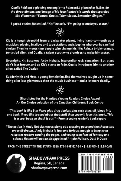 After a lifetime of sleeping in alleys and flophouses, Kit's musical talent is discovered, and he is remade into Andy Nebula. Well-fed, content with a warm bed and contract, Andy begins to wonder why every previous "Sensation Single" star was a flash-in-the-pan. Little does he know that the answer lies with the off-world Hydras and their taste for music and flash, a drug forbidden to humans...and that he is their next fix. Originally published as Andy Nebula: Interstellar Rock Star, this exciting outer-space teen adventure has been completely revised by the author for this new edition.