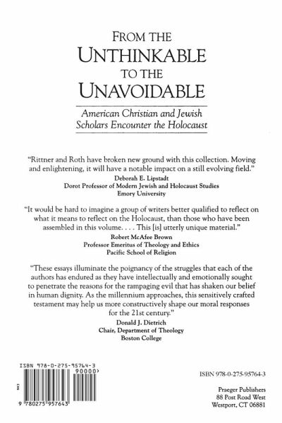Series Foreword Introduction: Memories, Encounters, and Challenges by Carol Rittner and John K. Roth Memories Voices for Change: Chapters in the Post-Holocaust Dialogue by Abraham J. Peck A Door that Opened and Never Closed: Teaching the Shoah by Eva Fleischner In the Name of the Father by Harry James Cargas Being Catholic, Learning Jewish: Personal Reflections on the Shoah by Eugene J. Fisher Post-Holocaust Jewish Reflections on German Theology by Susannah Heschel Encounters How My Mind Has Changed by Alan L. Berger My Experience with the Holocaust by Franklin H. Littell Penetrating Barriers: A Holocaust Retrospective by John T. Pawlikowski Once and Not Future Partisan: A Plea for History by A. Roy Eckardt From Ignorance to Insight by Carol Rittner Challenges The Shoah-Road to a Revised/Revived Christianity by Alice Eckardt From Anger to Inquiry by David R. Blumenthal A Twentieth-Century Journey by Richard L. Rubenstein Transforming the Void by Michael Berenbaum It Started with Tears: The Holocaust's Impact on My Life and Work by John K. Roth Selected Bibliography Index