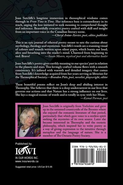 Poetry based on esoteric philosophies; theosophy; mysticism; Egyptian mythology; Poet is the librarian of The Theosophical Society of Canada. Well-researched and expertly crafted poetry based on theosophical wisdoms, Nature and the strong connection between humankind and their environment.