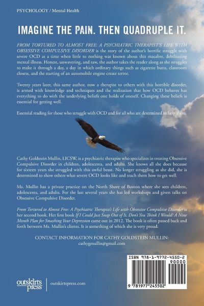 FROM TORTURED TO ALMOST FREE: A PSYCHIATRIC THERAPIST'S LIFE WITH OBSESSIVE COMPULSIVE DISORDER is the story of the author's horrific struggle with severe OCD at a time when little to nothing was known about this macabre, debilitating mental illness. Honest, unwavering, and raw, the author takes the reader along as she struggles to make it through a day, a day in which ordinary things such as cigarette butts, classroom closets, and the starting of an automobile engine create terror. Twenty years later, this same author, now a therapist to others with this horrible disorder, is armed with knowledge and techniques and the realization that how OCD behaves has everything to do with the underlying beliefs one holds of oneself. Changing these beliefs is essential for getting well. Essential reading for those who struggle with OCD and for all who are determined to help them.