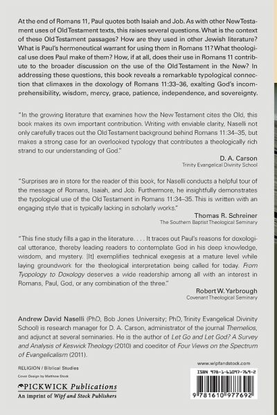At the end of Romans 11, Paul quotes both Isaiah and Job. As with other New Testament uses of Old Testament texts, this raises several questions. What is the context of these Old Testament passages? How are they used in other Jewish literature? What is Paul's hermeneutical warrant for using them in Romans 11? What theological use does Paul make of them? How, if at all, does their use in Romans 11 contribute to the broader discussion on the use of the Old Testament in the New? In addressing these questions, this book reveals a remarkable typological connection that climaxes in the doxology of Romans 11:33-36, exalting God's incomprehensibility, wisdom, mercy, grace, patience, independence, and sovereignty.