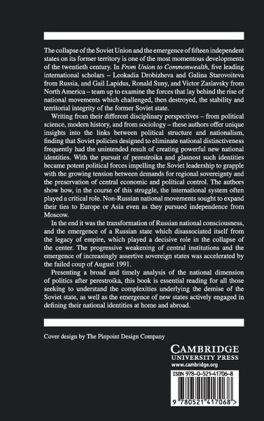 The collapse of the Soviet Union and the emergence of fifteen independent states on its former territory is one of the most momentous developments of the twentieth century. In this volume, five leading international scholars team up to examine the forces that lay behind the rise of national movements which challenged, then destroyed, the stability and territorial integrity of the former Soviet state offering unique insights into the links between political structure and nationalism. Presenting a broad and timely analysis of the national dimension of politics after perestroika, this book is essential reading for all those seeking to understand the complexities underlying the demise of the Soviet state, as well as the emergence of new states actively engaged in defining their national identities at home and abroad.