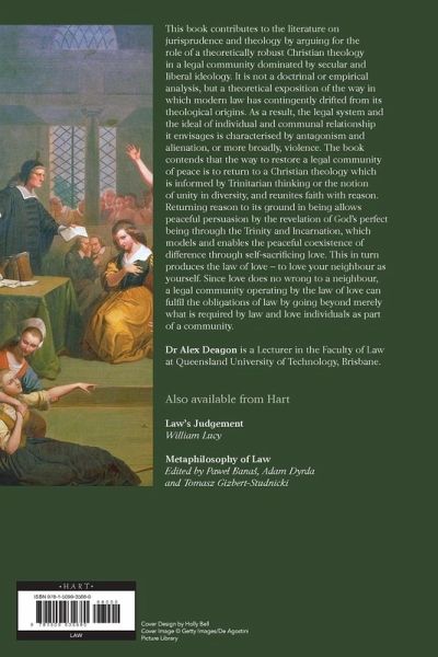 This book contributes to the literature on jurisprudence and theology by arguing for the role of a theoretically robust Christian theology in a legal community dominated by secular and liberal ideology. It is not a doctrinal or empirical analysis, but a theoretical exposition of the way in which modern law has contingently drifted from its theological origins. As a result, the legal system and the ideal of individual and communal relationship it envisages is characterised by antagonism and alienation, or more broadly, violence. The book contends that the way to restore a legal community of peace is to return to a Christian theology which is informed by Trinitarian thinking or the notion of unity in diversity, and reunites faith with reason. Returning reason to its ground in being allows peaceful persuasion by the revelation of God's perfect being through the Trinity and Incarnation, which models and enables the peaceful coexistence of difference through self-sacrificing love. This in turn produces the law of love - to love your neighbour as yourself. Since love does no wrong to a neighbour, a legal community operating by the law of love can fulfil the obligations of law by going beyond merely what is required by law and love individuals as part of a community.
