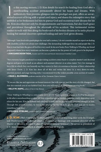 In this moving memoir, J. D. Kim details his search for healing from God after a snowboarding accident permanently altered his hopes and dreams. With authenticity Kim provides glimpses into his prodigal-son past, offers an unvarnished account of living with a spinal cord injury, and shares the redemptive story that unfolded as his brokenness led him to pursue God and reconstruct new dreams for his life. Kim describes not only his disappointments and frustrations, but also God's grace and providence throughout the aftermath of his accident. This testimonial invites readers to walk with him along the boulevard of his broken dreams as he seeks physical healing but instead discovers spiritual healing and new God-given dreams.