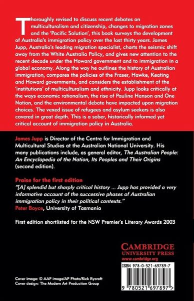 There has never been a greater need for a sober, historically informed yet critical account of immigration policy in Australia. In this revised and updated edition, James Jupp, Australia's leading specialist on migration, surveys the changes in policy over the last thirty years since the seismic shift away from the White Australia Policy. Along the way he outlines the history of Australian immigration, compares the achievements of the Fraser, Hawke and Keating governments, and considers the establishment of the 'institutions' of multiculturalism and ethnicity. Jupp looks critically at the ways economic rationalism, the rise of Pauline Hanson and One Nation, and the environmental debate have impacted upon migration choices. The vexed issue of refugees and asylum seekers is also covered in great depth.