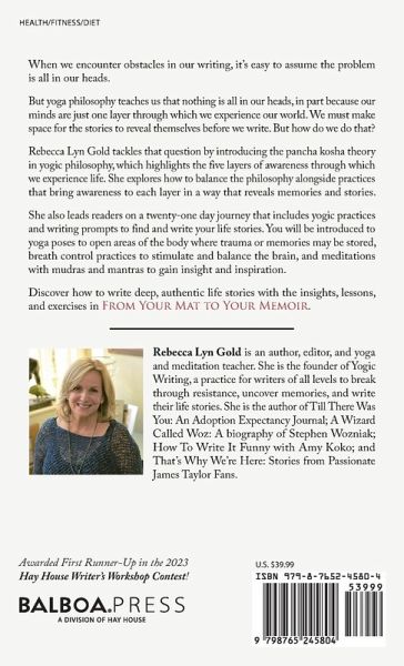 When we encounter obstacles in our writing, it's easy to assume the problem is all in our heads. But yoga philosophy teaches us that nothing is all in our heads, in part because our minds are just one layer through which we experience our world. We must make space for the stories to reveal themselves before we write. But how do we do that? Rebecca Lyn Gold tackles that question by introducing the pancha kosha theory in yogic philosophy, which highlights the five layers of awareness through which we experience life. She explores how to balance the philosophy alongside practices that bring awareness to each layer in a way that reveals memories and stories. She also leads readers on a twenty-one day journey that includes yogic practices and writing prompts to find and write your life stories. You will be introduced to yoga poses to open areas of the body where trauma or memories may be stored, breath control practices to stimulate and balance the brain, and meditations with mudras and mantras to gain insight and inspiration. Discover how to write deep, authentic life stories with the insights, lessons, and exercises in From Your Mat to Your Memoir.