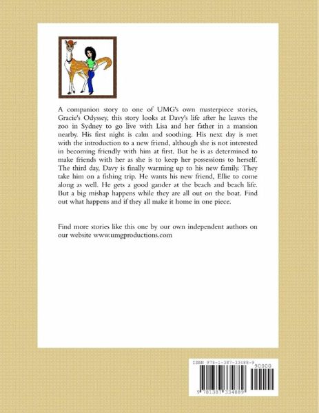 A companion story to one of UMG's own masterpiece stories, Gracie's Odyssey, this story looks at Davy's life after he leaves the zoo in Sydney to go live with Lisa and her father in a mansion nearby. His first night is calm and soothing. His next day is met with the introduction to a new friend, although she is not interested in becoming friendly with him at first. But he is as determined to make friends with her as she is to keep her possessions to herself. The third day, Davy is finally warming up to his new family. They take him on a fishing trip. He wants his new friend, Ellie to come along as well. He gets a good gander at the beach and beach life. But a big mishap happens while they are all out on the boat. Find out what happens and if they all make it home in one piece.