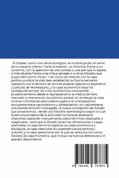 Suele ser admitido que la estructura esencial de la política hoy sigue siendo el Estado. Pero, porque sobre esto hay diferentes respuestas, debemos volver a preguntarnos: ¿qué es el Estado? En nuestra respuesta a dicha pregunta distinguimos cuatro capas en el Estado: la capa Basal Vital, que tiene que ver con la Base económica y sanitaria, la capa Conjuntiva, relacionada con la Superestructura política, la Capa Cultural referida a las ideologías y la Capa Cortical, que tiene que ver con las fronteras del Estado. Otorgamos, sin embargo, un papel central al establecimiento de esta especie de "corteza" del Estado que son las fronteras. Pues a diferencia de la Teoría del Pacto Social como origen del Estado, propia de Hobbes y Locke, o de la Teoría de la lucha de Clases de Marx o Rousseau, para quienes el Estado surge para la defensa de la clase explotadora dominante, la posición que defendemos en este libro sitúa el origen del Estado en la fijación de las fronteras.