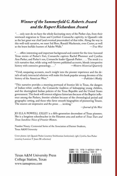 2001 Summerfield G. Roberts Award, presented by the Sons of the Republic of Texas Drawing on a wealth of contemporary accounts, including several first-person stories, Jo Ella Powell Exley follows Cynthia Ann-Parker-a descendant of Elder John Parker-last of the great Comanche war chiefs- through her life in the Indian camp and eventually her recapture by her birth family. She also tells the dramatic story of Quanah Parker through childhood, battle, surrender, and reservation life. This narrative sets straight a story that has sometimes been distorted, offering new insight of Cynthia Ann Parker's last years, providing a complex picture of the "white" years of a woman who had matured among the Comanches since the age of nine. Among the documents from which Exley draws are a short autobiography of Daniel Parker, Rachel Parker Plummer's two narratives of her Indian captivity, James Parker's account of his search for Rachel and the other captives and several autobiographical accounts Quanah dictated to his friends. First published in 2001, Frontier Blood received the Summerfield G. Roberts award and the Rupert Richardson award. JO ELLA POWELL EXLEY is a fifth-generation descendant of Texas pioneers. She is a longtime schoolteacher in the Houston area and editor of Texas Tears and Texas Sunshine: Voices of Frontier Women, also published by Texas A&M University Press. What Readers Are Saying: " . . . . only now do we have the whole fascinating story of the Parker Clan, from their westward migration on to Texas and Cynthia's Commanche captivity, to Quanah's role as the last great war chief (and eventual peacemaker) of that tribe. Along the way in this well-told narrative, we meet Sul Ross, Ranald Mackenzie, even Custer, as well as the brave buffalo hunters of Adobe Walls. " --True West "Vivid, unsparing accounts, much insight into the pioneer experience and the details of early interracial relations will make this book popular among devotees of the history of the American West." --Publisher's Weekly "This narrative provides a stunning portrayal of frontier life in Texas, the dangers of Indian-white conflict, the Comanche tradition of kidnapping young children, and the shortsighted Indian policies of the Texas Republic and the United States government. This book will interest religious historians because of the Baptist influence among the Parkers, frontier scholars because of the chronological period and geographic setting, and those who favor smooth biographies of pioneering Texans." --Journal of the West "Entertaining as well as informative, Frontier Blood brings a fresh perspective to a familiar Texas story." --Texas Parks & Wildlife " . . . . only now do we have the whole fascinating story of the Parker clan, from their westward migration to Texas and Cynthia's Comanche captivity, to Quanah's role as the last great war chief." --True West