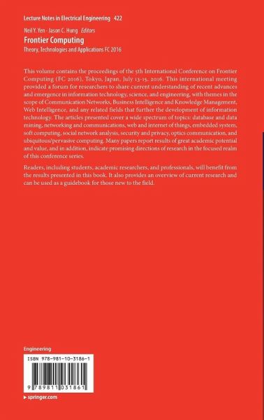 This volume contains the proceedings of the 5th International Conference on Frontier Computing (FC 2016), Tokyo, Japan, July 13-15, 2016. This international meeting provided a forum for researchers to share current understanding of recent advances and emergence in information technology, science, and engineering, with themes in the scope of Communication Networks, Business Intelligence and Knowledge Management, Web Intelligence, and any related fields that further the development of information technology. The articles presented cover a wide spectrum of topics: database and data mining,…mehr