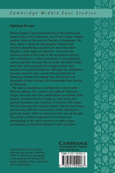 Richard Tapper's book, which is based on three decades of ethnographic fieldwork and extensive documentary research, traces the political and social history of the Shahsevan, one of the major nomadic peoples of Iran. The story is a dramatic one, recounting the mythical origins of the tribes, their unification as a confederacy, and their decline under the Pahlavi Shahs. The book is intended as a contribution to three different debates. The first concerns the riddle of Shahsevan origins, while another considers how far changes in tribal social and political formations are a function of relations with states. The third discusses how different constructions of the identity of a particular people determine their view of the past. In this way, the book promises not only to make a major contribution to the history and anthropology of the Middle East and Central Asia, but also to theoretical debates in both disciplines.
