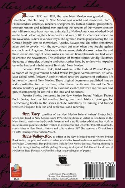 Between 1850 and 1912, the year New Mexico was granted statehood, the Territory of New Mexico was a wild and dangerous place. Homesteaders, cowboys, ranchers, sheepherders, buffalo hunters, prospectors, treasure hunters and railroad men pushing the borders of the western frontier met with resistance from man and animal alike. Native Americans, who had lived on the land defending their boundaries and way of life for centuries, reacted to the wave of outsiders in various ways. The agrarian Pueblo peoples along the Rio Grande largely kept to themselves. Apache, Navajo and Ute tribes sometimes attempted to co-exist with the newcomers but most often they fought against encroachment. Anglo and Mexican outlaws ran roughshod across the frontier and there was no shortage of bears, wolves, mountain lions, blizzards and bad water to unsettle the newcomers. This collection of frontier stories vividly illustrates the range of struggles, triumphs and catastrophes faced by settlers who hoped to tame the land and inhabitants of Territorial New Mexico. Between 1936 and 1940, field workers in the Federal Writers' Project (a branch of the government-funded Works Progress Administration, or WPA, later called Work Projects Administration) recorded authentic accounts of life in the early days of New Mexico. These original documents, published here as a story collection for the first time, reflect the conditions of the New Mexico Territory as played out in dynamic clashes between individuals and groups competing for control of the land and resources. "Frontier Stories," the second in the New Mexico Federal Writers' Project Book Series after "Outlaws & Desperados," features informative background and historic photographs. Forthcoming books in the series include "Lost Treasures & Old Mines" and "Stories From Hispano New Mexico."