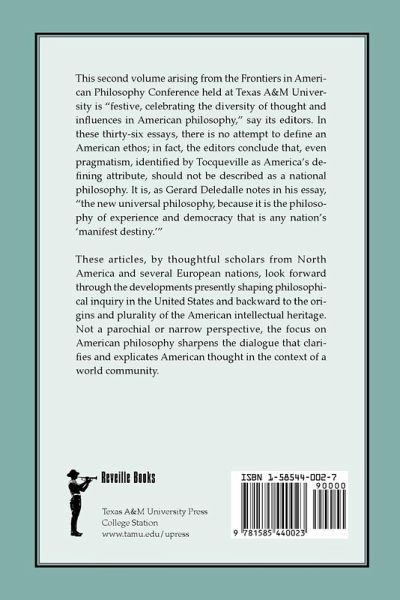 This second volume arising from the Frontiers in American Philosophy Conference held at Texas A&M University is "festive, celebrating the diversity of thought and influences in American philosophy," say its editors. In these thirty-six essays, there is no attempt to define an American ethos; in fact, the editors conclude that, even pragmatism, identified by Tocqueville as America's defining attribute, should not be described as a national philosophy. It is, as Gerard Deledalle notes in his essay, "the new universal philosophy, because it is the philosophy of experience and democracy that is any nation's `manifest destiny.'" These articles, by thoughtful scholars from North America and several European nations, look forward through the developments presently shaping philosophical inquiry in the United States and backward to the origins and plurality of the American intellectual heritage. Not a parochial or narrow perspective, the focus on American philosophy sharpens the dialogue that clarifies and explicates American thought in the context of a world community.