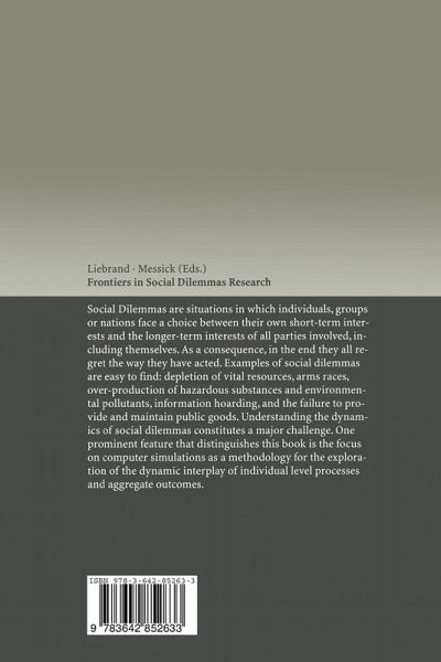 Social dilemmas are situations in which individuals, groups or nations face a choice between their own short-term interests and the longer-term interests of all parties involved, including themselves. As a consequence, in the end they all regret the way they have acted. Examples of social dilemmas are easy to find: depletion of vital resources, arms races, over-production of hazardous substances and environmental pollutants, information hoarding, and the failure to provide and maintain public goods. Understanding the dynamics of social dilemmas constitutes a major challenge. One prominent feature that distinguishes this book is the focus on computer simulations as a methodology for the exploration of the dynamic interplay of individual level processes and aggregate outcomes.