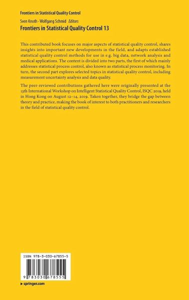 This contributed book focuses on major aspects of statistical quality control, shares insights into important new developments in the field, and adapts established statistical quality control methods for use in e.g. big data, network analysis and medical applications. The content is divided into two parts, the first of which mainly addresses statistical process control, also known as statistical process monitoring. In turn, the second part explores selected topics in statistical quality control, including measurement uncertainty analysis and data quality. The peer-reviewed contributions gathered here were originally presented at the 13th International Workshop on Intelligent Statistical Quality Control, ISQC 2019, held in Hong Kong on August 12-14, 2019. Taken together, they bridge the gap between theory and practice, making the book of interest to both practitioners and researchers in the field of statistical quality control.