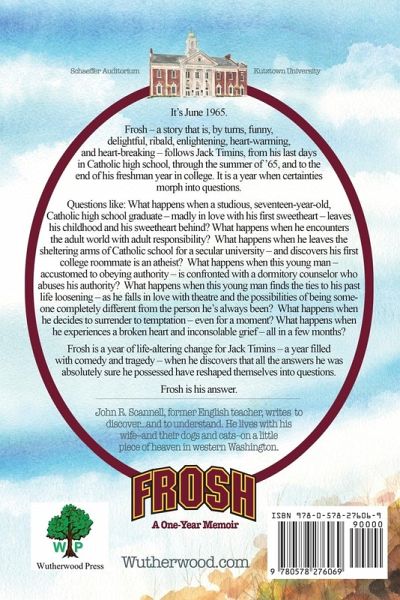 The year is 1965, and Jack Timins, born and raised Catholic and educated for twelve years in Catholic schools, is going out into the big, wide, secular world. After his summer job as an assistant manager at a municipal pool, Jack is off to college leaving "the woman he loves" and his childhood behind. At college, Jack must handle a host of new and unsettling experiences-hazing by upperclassmen; a power-crazed dorm counselor; an atheist roommate; an unanticipated sexual awakening; and the tragic death of a loved one. He also delights in discovering his love of theatre and acting-reveling in his ability to step outside himself. Frosh is Jack Timins' crucial, life-altering, eye-opening, and heart-breaking year of self-discovery. By turns funny, heart-warming, and sad, Frosh is the story of how Jack discovers that our lives often don't unfold as we had planned.
