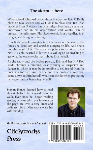 The storm is here When a freak blizzard descends on Manhattan, Erin O'Reilly plans to take shelter and wait for it to blow over. But Irish mobster Evan O'Malley has other ideas. He's heard there's an undercover cop in his organization and wants Erin to unmask the infiltrator. Phil Stachowski, Erin's handler, is in danger, and he's gone missing. Erin finds herself plunging into the heart of the storm. She finds one dead cop and another clinging to life. And that's not the worst of it. The evidence points to a traitor in the NYPD, a cold-hearted killer who is willing to do anything to get what he wants-the truth about Erin herself. As the snow and the bodies pile up, Erin and her K-9 Rolf wade through a blinding, deadly flurry of suspicion and danger in which it may be impossible to tell friend from foe until it's too late. And in the end, the coldest choice will come down to Erin herself: what can she do when protecting her secret means betraying herself?