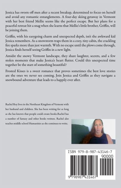 Jessica has sworn off men after a recent breakup, determined to focus on herself and avoid any romantic entanglements. A four-day skiing getaway in Vermont with her best friend Mellie seems like the perfect escape. But her plans for a peaceful retreat hit a snag when she learns that Mellie's little brother, Griffin, will be joining them. Griffin, with his easygoing charm and unexpected depth, isn't the awkward kid Jessica remembers. As a snowstorm traps them in a cozy, tiny cabin, the crackling fire sparks more than just warmth. With no escape until the plows come through, Jessica finds herself seeing Griffin in a new light. Amidst the snowy Vermont landscape, they share laughter, secrets, and a few stolen moments that make Jessica's heart flutter. Could this unexpected time together be the start of something beautiful? Frosted Kisses is a sweet romance that proves sometimes the best love stories are the ones we never see coming. Join Jessica and Griffin as they navigate a snowbound adventure that leads to a happily ever after.