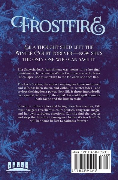 Eila thought she'd left the Winter Court forever-now she's the only one who can save it. Eila Snowshadow's banishment was meant to be her final punishment, but when the Winter Court teeters on the brink of collapse, she must return to the fae world she once fled. The Icicle Scepter, the artifact keeping her homeland frozen and safe, has been stolen, and without it, winter fades-and so does the kingdom's power. Now, Eila is thrust into a deadly race against time to stop the ritual that could spell doom for both Faerie and the human realm. Joined by unlikely allies and facing relentless enemies, Eila must navigate treacherous court politics, dangerous magic, and her own turbulent emotions. Can she find the scepter and stop the Frostfire Convergence before it's too late? Or will her home be lost to darkness forever?