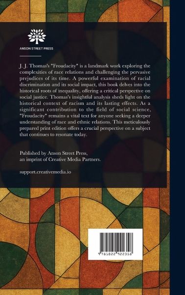 J. J. Thomas's "Froudacity" is a landmark work exploring the complexities of race relations and challenging the pervasive prejudices of its time. A powerful examination of racial discrimination and its social impact, this book delves into the historical roots of inequality, offering a critical perspective on social justice. Thomas's insightful analysis sheds light on the historical context of racism and its lasting effects. As a significant contribution to the field of social science, "Froudacity" remains a vital text for anyone seeking a deeper understanding of race and ethnic relations. This meticulously prepared print edition offers a crucial perspective on a subject that continues to resonate today. This work has been selected by scholars as being culturally important, and is part of the knowledge base of civilization as we know it. This work is in the public domain in the United States of America, and possibly other nations. Within the United States, you may freely copy and distribute this work, as no entity (individual or corporate) has a copyright on the body of the work. Scholars believe, and we concur, that this work is important enough to be preserved, reproduced, and made generally available to the public. We appreciate your support of the preservation process, and thank you for being an important part of keeping this knowledge alive and relevant.
