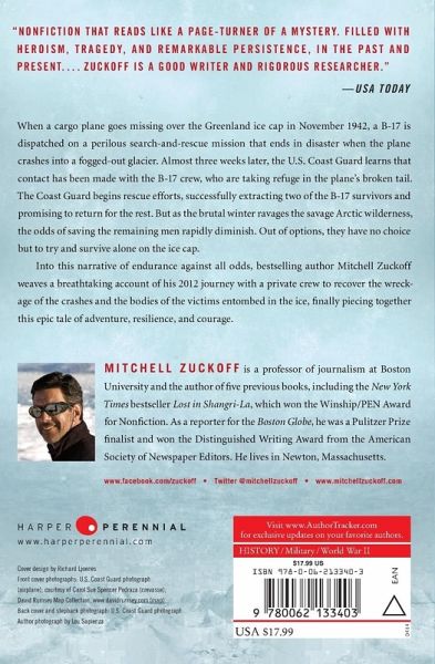 When a cargo plane goes missing over the Greenland ice cap in November 1942, a B-17 is dispatched on a perilous search-and-rescue mission that ends in disaster when the plane crashes into a fogged-out glacier. Almost three weeks later, the U.S. Coast Guard learns that contact has been made with the B-17 crew, who are taking refuge in the plane's broken tail. The Coast Guard begins rescue efforts, successfully extracting two of the B-17 survivors and promising to return for the rest. But as the brutal winter ravages the savage Arctic wilderness, the odds of saving the remaining men rapidly diminish. Out of options, they have no choice but to try and survive alone on the ice cap. Into this narrative of endurance against all odds, bestselling author Mitchell Zuckoff weaves a breathtaking account of his 2012 journey with a private crew to recover the wreckage of the crashes and the bodies of the victims entombed in the ice, finally piecing together this epic tale of adventure, resilience, and courage.