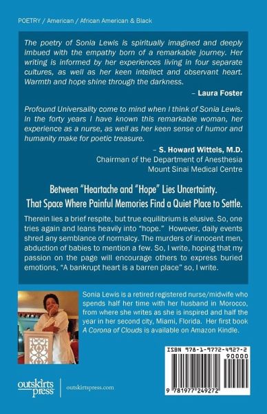 Between "Heartache and "Hope" Lies Uncertainty. That Space Where Painful Memories Find a Quiet Place to Settle. Therein lies a brief respite, but true equilibrium is elusive. So, one tries again and leans heavily into "hope." However, daily events shred any semblance of normalcy. The murders of innocent men, abduction of babies to mention a few. So, I write, hoping that my passion on the page will encourage others to express buried emotions, "A bankrupt heart is a barren place" so, I write.