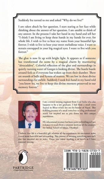 Suddenly Ira turned to me and asked "Why do we live?" I am taken aback by her question. I start staring at her face while thinking about the answer of her question. I am unable to think of any answer. In the process I take her hand in my hand and tell her "I think I am living to keep these hands in my hands for ever, for whole life. I wish to live to hear my name from your beautiful lips forever. I wish to live to hear your sweet melodious voice. I want to remain entrapped in your big magical eyes. I want to live with you forever." The ghat is now lit up with bright light. It appears as if someone has transformed the scene by a magical charm by murmuring "abracadabra". Colorful reflection of the ghat and surroundings in quietly running water of Ganges is looking divine. The hustle bustle around feels as if everyone has woken up from their slumber. There are sounds of bells and hymns of mantra. We are lost in these divine surroundings for awhile. Suddenly I took Ira's hand in my hand told "you know Ira, we live to keep this divine moment preserved in our memory forever."
