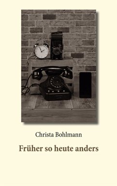Früher so heute andersEin schwarzes Telefon, eine alte Fotokamera und ein Wecker,heute übernimmt ein Smatphone die Funktionen dafür, und es kann sogar noch viel mehr. Früher, als ich Kind war, fotografierte meine Mutter leidenschaftlich mit ihrer Voigtländer Kamera. Es gab fast nur Außenaufnahmen, denn ein Blitzlicht für Fotos aus der guten Stube hatte sie nicht. Man telefonierte mit dem schweren schwarzen Telefon, nachdem die Rufnummer mit der Scheibe gewählt wurde. Ganz früher wurden die Ortsgespräche sogar noch im Fernamt per Hand vermittelt. Was hat sich alles im Laufe der Jahre verändert? Zum Beispiel beim Hausbau, bei den Banken, der Post und in den Apotheken.In jeder Geschichte stellt sich die Frage nach dem Warum. Jeder wird eine Antwort darauf finden. Zu lesen ist von alten Bräuchen, Traditionen, Angewohnheiten und wohlgemeinten Ratschlägen aus einem Büchlein aus dem Jahr 1953. Nicht jeder Tipp daraus wird heute noch beherzigt, denn wer möchte sich die Zähne mit Zigarrenasche putzen?Erstaunlicherweise hat sich beim Thema Hochzeit gar nicht soviel verändert, denn da haben Traditionen noch einen hohen Wert.Jede Zeit hat ihren Reiz, man muss nur das Beste davon machen:früher so und heute anders.