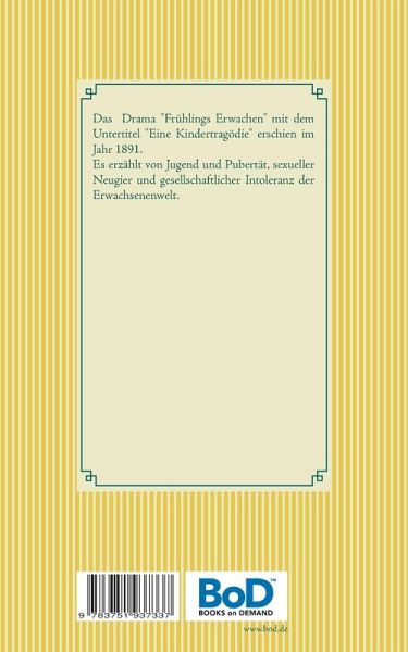 Das gesellschaftskritische Drama "Frühlings Erwachen" mit dem Untertitel "Eine Kindertragödie" erschien im Jahr 1891. Es erzählt von Jugend und Pubertät, sexueller Neugier und gesellschaftlicher Intoleranz der Erwachsenenwelt.