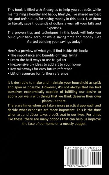 This book is filled wth strategies to help you cut costs while maintaining a healthy and happy lifestyle. I've shared my best tips and techniques for saving money in this book. Use them to literally save thousands of dollars a year off your bills and expenses. The proven tips and techniques in this book will help you build your bank account while saving time and money. Get started building your savings today! Here's a preview of what you'll find inside this book:The importance and benefits of frugal living Learn the best ways to use frugal art Inexpensive diy ideas to add art to your home Key takeaways for easy future reference List of resources for further reference It is desirable to make and maintain your household as spick and span as possible. However, it's not always that we find ourselves economically capable of fulfilling our desire to adorn our walls with things that we think deserve their own places up there. There are times when we take a more practical approach and decide what expenses are more important. This is the time when art and décor takes a back seat in our lives. For times like these, there are many options that can help us improve the face of our home on a measly budget.