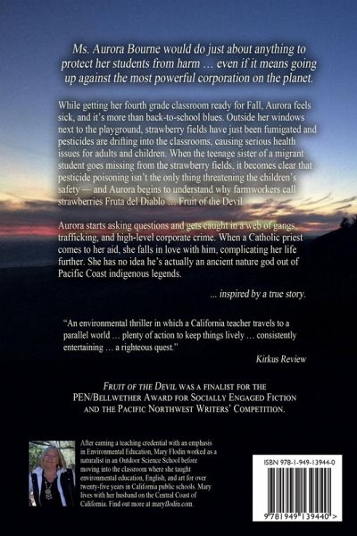 Ms. Aurora Bourne would do anything to protect her students from harm ... even if that means going up against the most powerful corporation on the planet. While getting her fourth grade classroom ready for Fall, Aurora begins to feel sick, and it's more than back-to-school blues. Outside her windows next to the playground, strawberry fields have just been fumigated and pesticides are drifting into the classrooms, causing serious health issues for children and adults. When the teenage sister of a migrant student goes missing from the strawberry fields, it becomes clear that pesticide poisoning isn't the only thing threatening the children's safety, and Aurora begins to understand why farmworkers call strawberries Fruta del Diablo - the Fruit of the Devil. Aurora starts asking questions and gets caught in a web of gangs, drugs, trafficking, and high-level corporate crime. When a Catholic priest comes to her aid, she falls in love with him, complicating her life further. She has no idea he's actually an ancient nature god out of Pacific Coast indigenous legends.