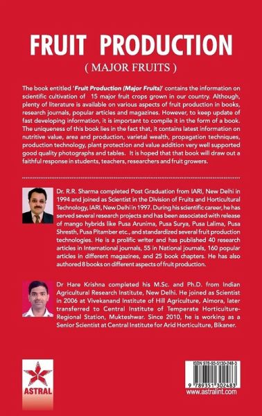 The book entitled 'Fruit Production: Major Fruits' contains the information on scientific cultivation of 15 major fruit crops grown in our country. Although, plenty of literature is available on various aspects of fruit production in books, research journals, popular articles and magazines. However, to keep update of fast developing information, it is important to compile it in the form of a book. The uniqueness of this book lies in the fact that, it contains latest information on nutritive value, area and production, varietal wealth, propagation techniques, production technology, plant protection and value addition very well supported by good quality photographs and tables. It is hoped that book will draw out a faithful response in students, teachers, researchers, extension personnel and fruit growers.
