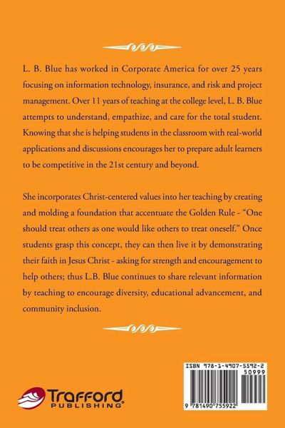 L. B. Blue has worked in Corporate America for over 25 years focusing on information technology, insurance, and risk and project management. Over 11 years of teaching at the college level, L. B. Blue attempts to understand, empathize, and care for the total student. Knowing that she is helping students in the classroom with real-world applications and discussions encourages her to prepare adult learners to be competitive in the 21st century and beyond. She incorporates Christ-centered values into her teaching by creating and molding a foundation that accentuate the Golden Rule - "One should treat others as one would like others to treat oneself." Once students grasp this concept, they can then live it by demonstrating their faith in Jesus Christ - asking for strength and encouragement to help others; thus L.B. Blue continues to share relevant information by teaching to encourage diversity, educational advancement, and community inclusion.